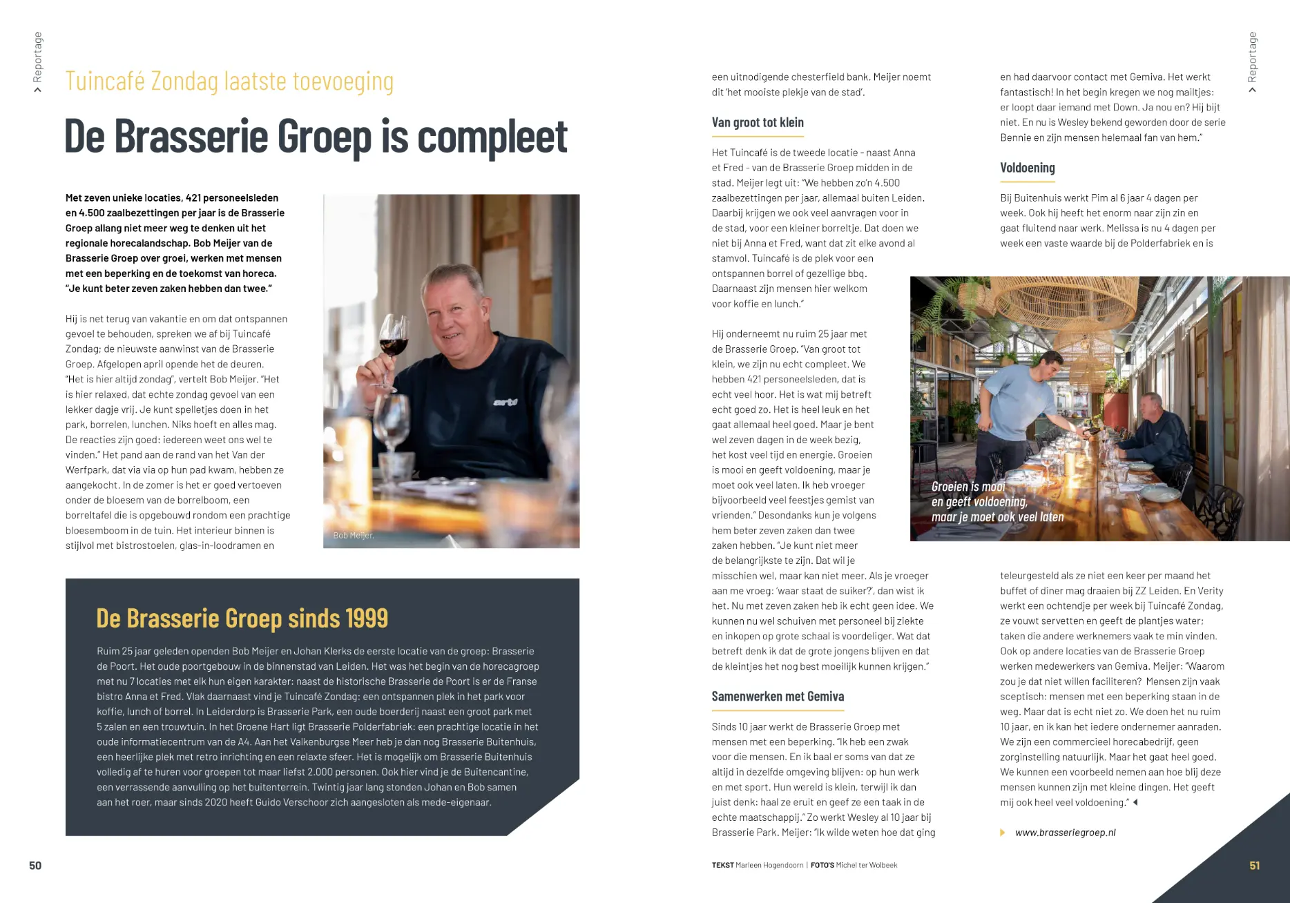 Met zeven unieke locaties, 421 personeelsleden en 4.500 zaalbezettingen per jaar is de Brasserie Groep allang niet meer weg te denken uit het regionale horecalandschap. Bob Meijer van de Brasserie Groep over groei, werken met mensen met een beperking en de toekomst van horeca.